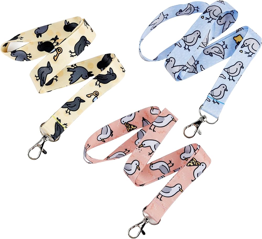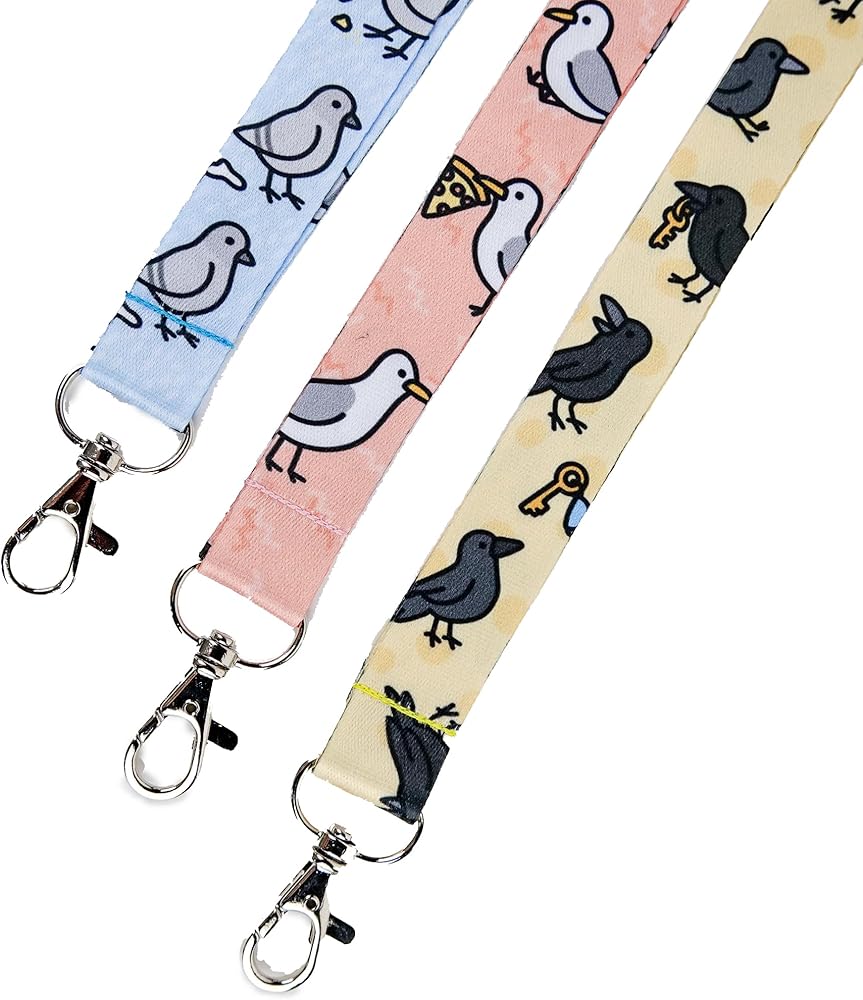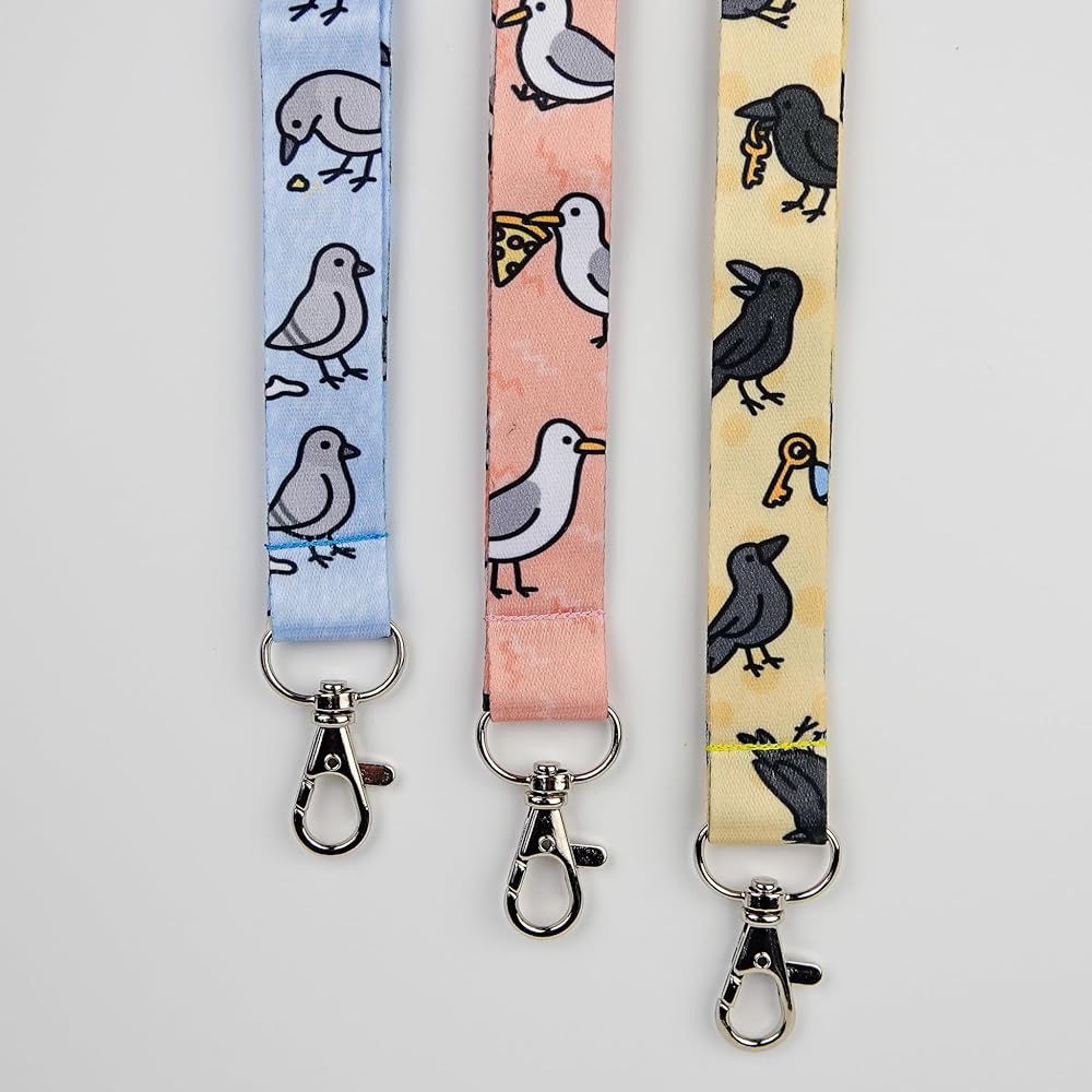 Add a playful touch to your daily routine with this charming set of three illustrated lanyards featuring the most charismatic city birds - pigeons, seagulls, and crows. Created by mental health illustrator Lindsay Braman, each 20-inch lanyard showcases original artwork inspired by the quirky urban wildlife of New York, Seattle, and coastal Mexico. The ultra-soft polyester construction ensures all-day comfort without stiff seams, making these lanyards perfect for extended wear in professional settings. The dye-sublimation printing process embeds the whimsical designs directly into the fabric, ensuring the artwork remains vibrant through regular use and washing. Each 2cm-wide lanyard comes equipped with a silver lobster clasp, ready to secure your ID badge, keys, or access card. Whether you're a teacher brightening up your classroom attire, a therapist adding personality to your professional wear, or a student looking to stand out on campus, these conversation-starting lanyards bring both functionality and charm to your everyday carry essentials.