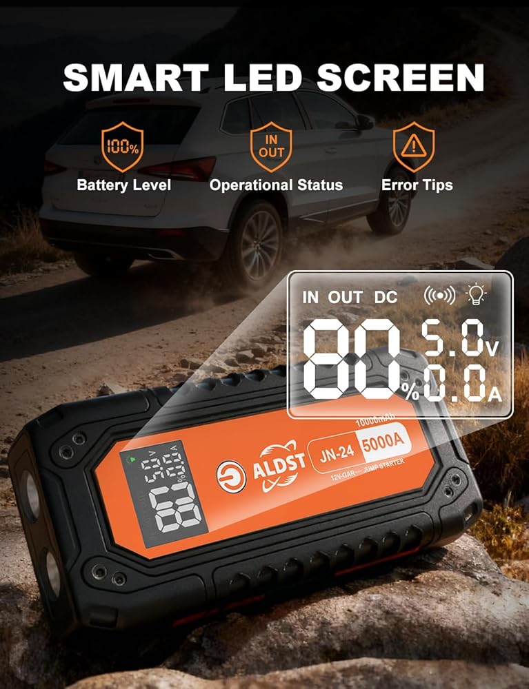 قوة احترافية: تجربة المحرك السريع يبدأ بتيار قوي يبلغ 5000 أمبير. تم تصميم جهاز تشغيل السيارة عالي الأداء هذا لإعادة إحياء البطاريات بسرعة في المركبات التي تصل سعتها إلى 9.0 لترًا من الغاز أو 8.0 لترًا من الديزل، مما يوفر حلاً فعالاً للسائقين الذين يقدرون الأداء ويطالبون بأداة موثوقة للمواقف العاجلة