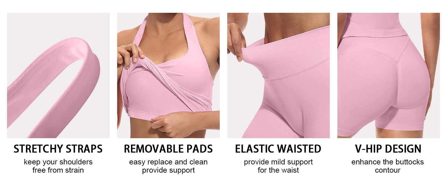 دعم هالتر مريح وآمن: تم تصميم هذا الجزء العلوي بأشرطة مطاطية عريضة، ويوفر دعمًا مغلقًا يمنع أي انزلاق للحزام أثناء الحركات المكثفة، كل ذلك دون الشعور بالضيق أو التقييد على الرقبة.