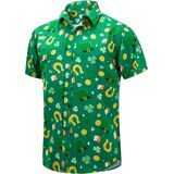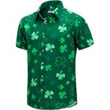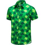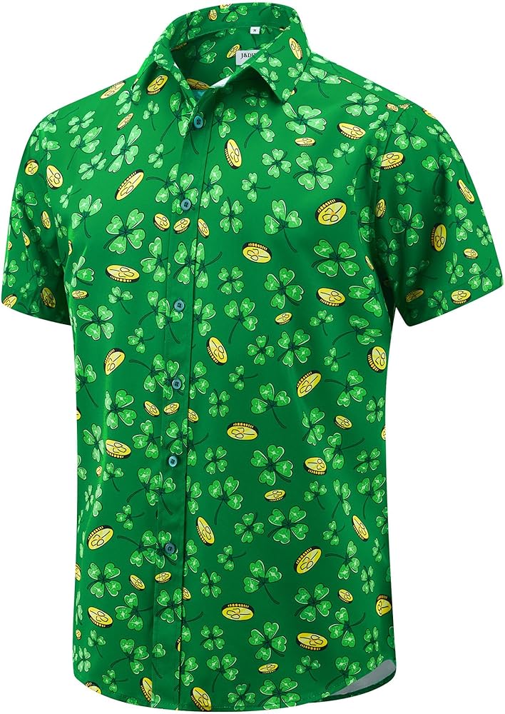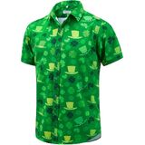 قميص J & DHUASHA الرجالي لعيد القديس باتريك قمصان شامروك أيرلندية مطبوعة باللون الأخضر البرسيم هاواي بأزرار سفلية وأكمام قصيرة in Kuwait