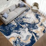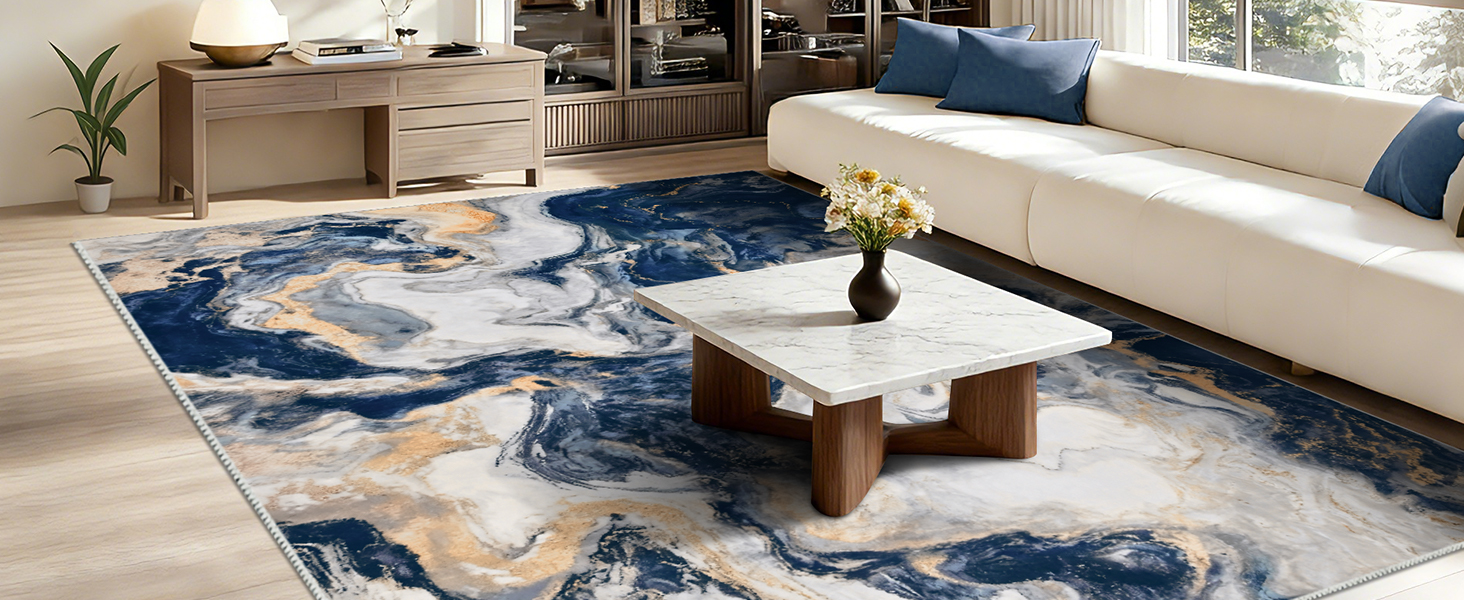 سجادة رخامية Yinhua مقاس 5 × 7، سجادة قابلة للغسل باللونين الأزرق والذهبي وغير قابلة للانزلاق، سجاد حديث من الصوف الصناعي الناعم غير قابل للتساقط، سجاد منطقة مجردة منخفض الكومة غير قابل للانزلاق، سجادة أرضية مقاومة للبقع لغرفة المعيشة وغرفة النوم والمكتب