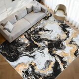 تصميم رخامي تجريدي: تجمع سجادة غرفة المعيشة الرخامية القابلة للغسل بين التدفق الطبيعي للملمس الرخامي مع صقل الألوان المعدنية، مما يجعلها مناسبة للمساحات المنزلية البسيطة والحديثة والخفيفة. يتم وضعها في غرفة النوم، وطاولة الطعام، والمكتب، مما يجعلها ذات حضور لافت للنظر
