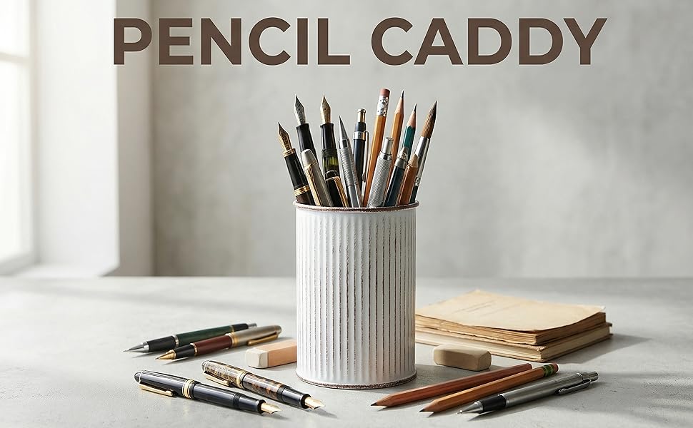 • تصميم متعدد الاستخدامات وأنيق: يتميز حامل القلم المكتبي هذا بحافة ملفوفة مع لمسة نهائية ناعمة وسهلة الاستخدام وأنماط أخدود عمودية تمزج بين المتانة المعدنية والخطوط الأنيقة. عملي تمامًا وممتع من الناحية الجمالية، فهو يكمل دون عناء العديد من أنماط ديكور المكتب والمنزل والمدرسة مع تعزيز الجاذبية البصرية لأي بيئة.