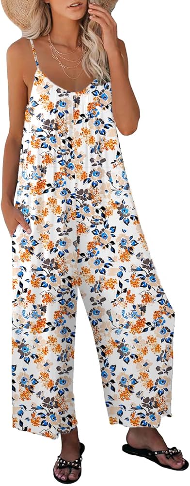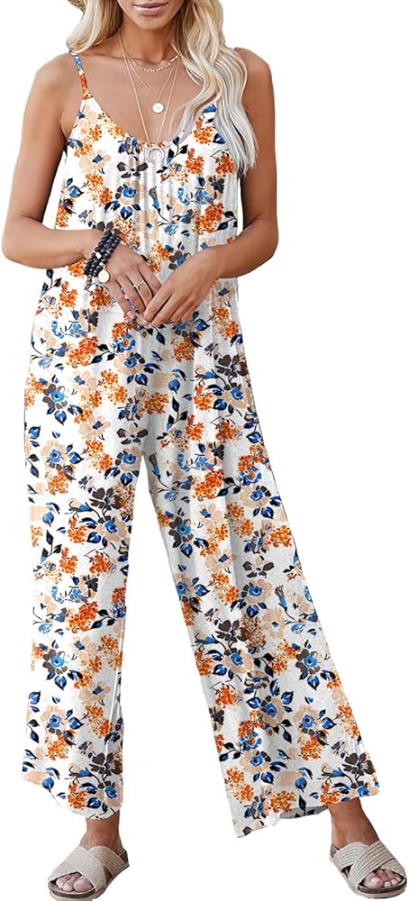 Features: women casual jumpsuit features a scoop neckline and racer back, making it perfect for the summer season. The adjustable spaghetti straps allow you to customize the fit according to your comfort. The loose and free waist area provides a relaxed and easy-to-wear style. The wide-leg pants and two side pockets add to its versatility, making it an ideal choice for women looking for a loose fit and casual style in the summer.