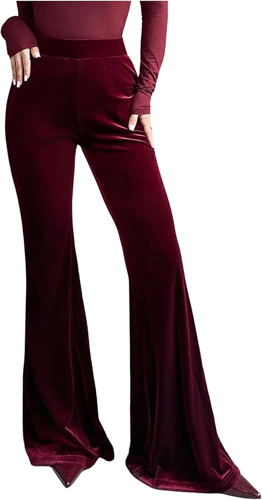 SOLY HUX Women's Velvet Flare Pants Elastic High Waisted Bell Bottom Pants Casual Trousers in Kuwait