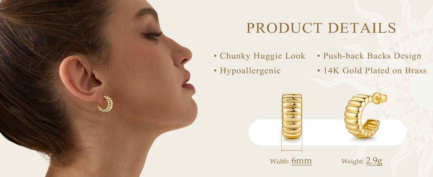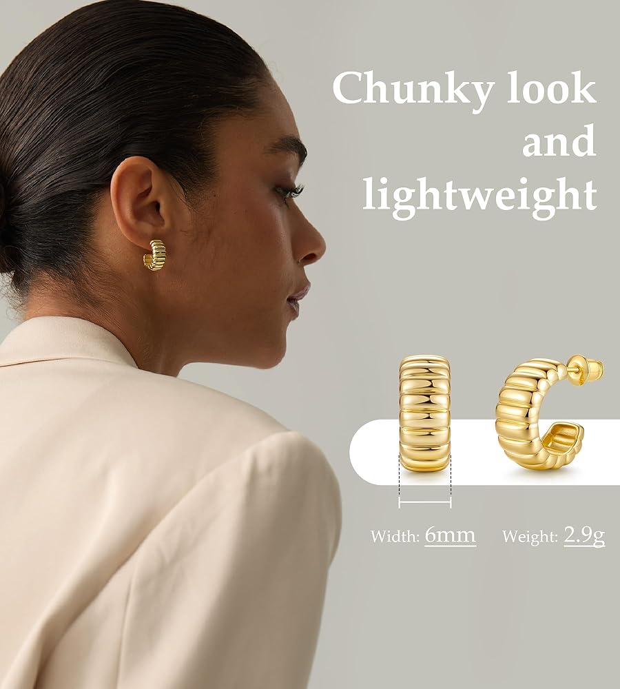 Chunky Look Design & Lightweight: 2.9g per earring which feels like nothing even all day long. Featuring the croissant design, the earrings offer the bold chunky look at a fraction of the weight, and add a vintage touch to your daily wear