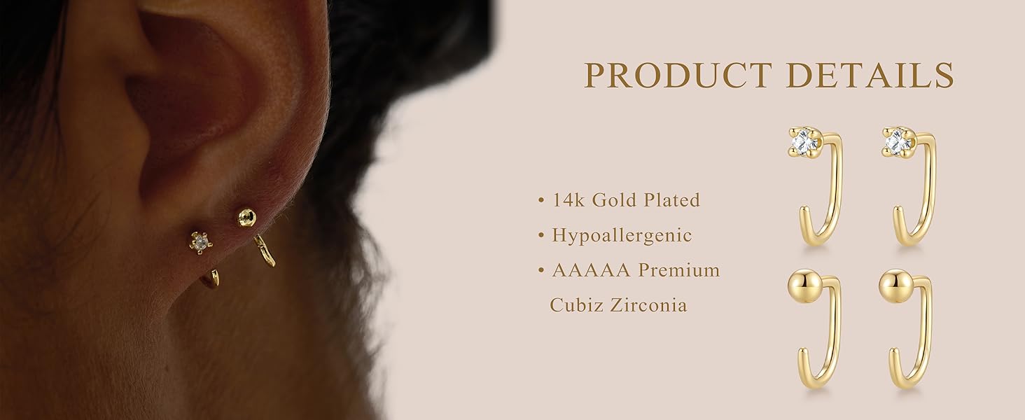 - هيكل خفيف الوزن: تم تصميم كل قرط ليكون خفيفًا على الأذن لضمان الراحة طوال اليوم دون إرهاق الثقب