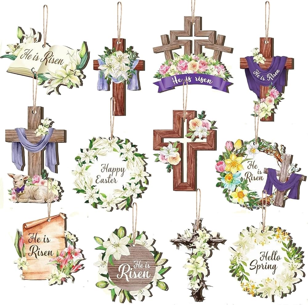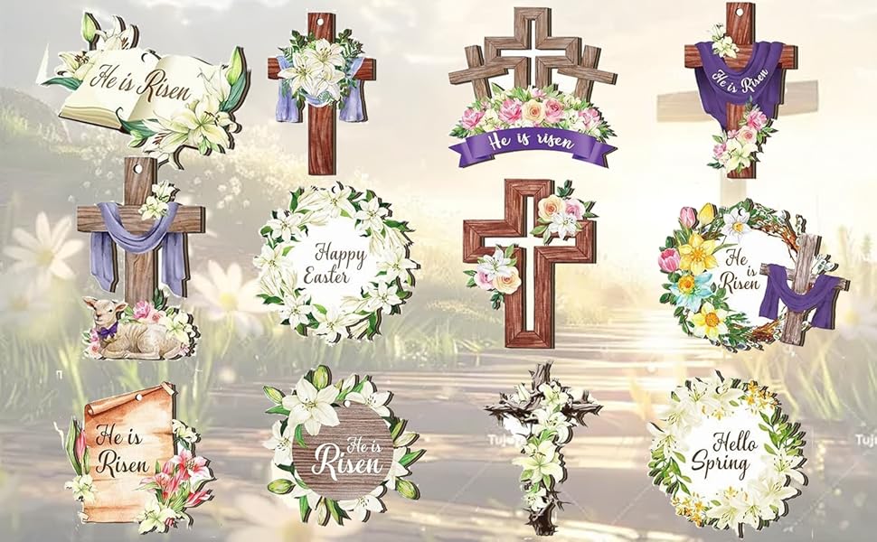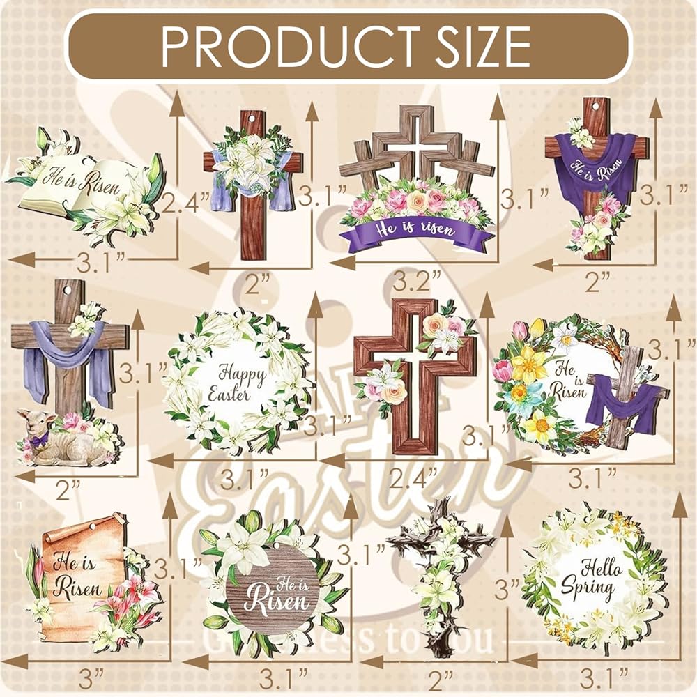 ما الذي ستحصل عليه - سوف تحصل على 24 قطعة من زخارف عيد الفصح الخشبية المليئة بالعناصر اللطيفة! بما في ذلك الأرنب، البيضة، الشاحنة، الزهرة، الصليب. زينة زينة عيد الفصح هذه ليست مجرد زينة؛ إنهم يضبطون المزاج، ويضيفون لمسة احتفالية إلى منزلك أو حفلتك. ارفع مساحتك بالحظ واخلق ذكريات لا تُنسى في عيد الفصح!