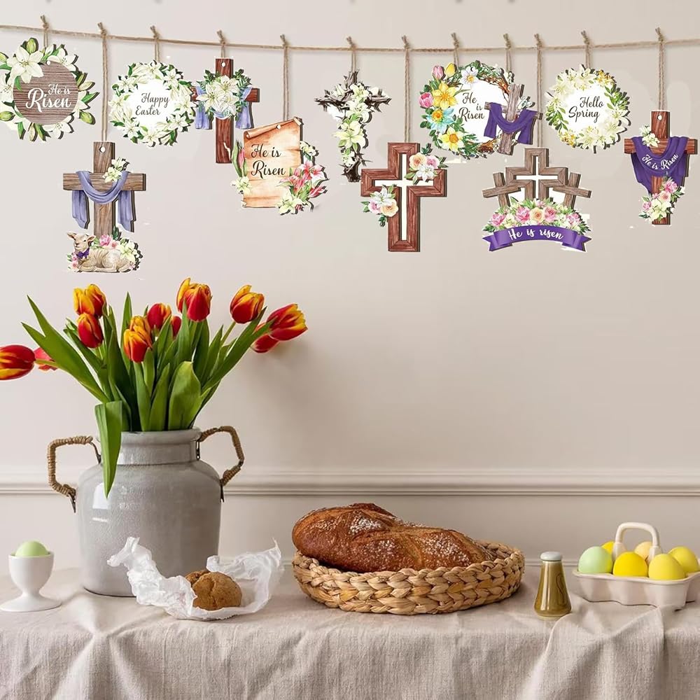 زينة عيد الفصح الأكثر ثباتًا - زخارف عيد الفصح الخشبية المعلقة مصنوعة من خشب عالي الجودة، مما يضمن المتانة التي لا يمكن أن تتطابق مع الزخارف الورقية. فهي لا تقاوم الانحناء فحسب، بل يُسمح لها أيضًا بالاستخدام المتكرر. بفضل التزامك بالاستدامة، فإنك تجعل عالمنا مكانًا أفضل.
