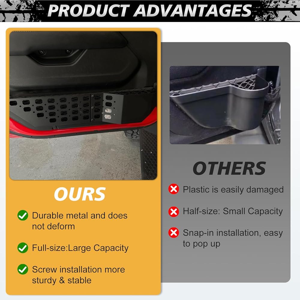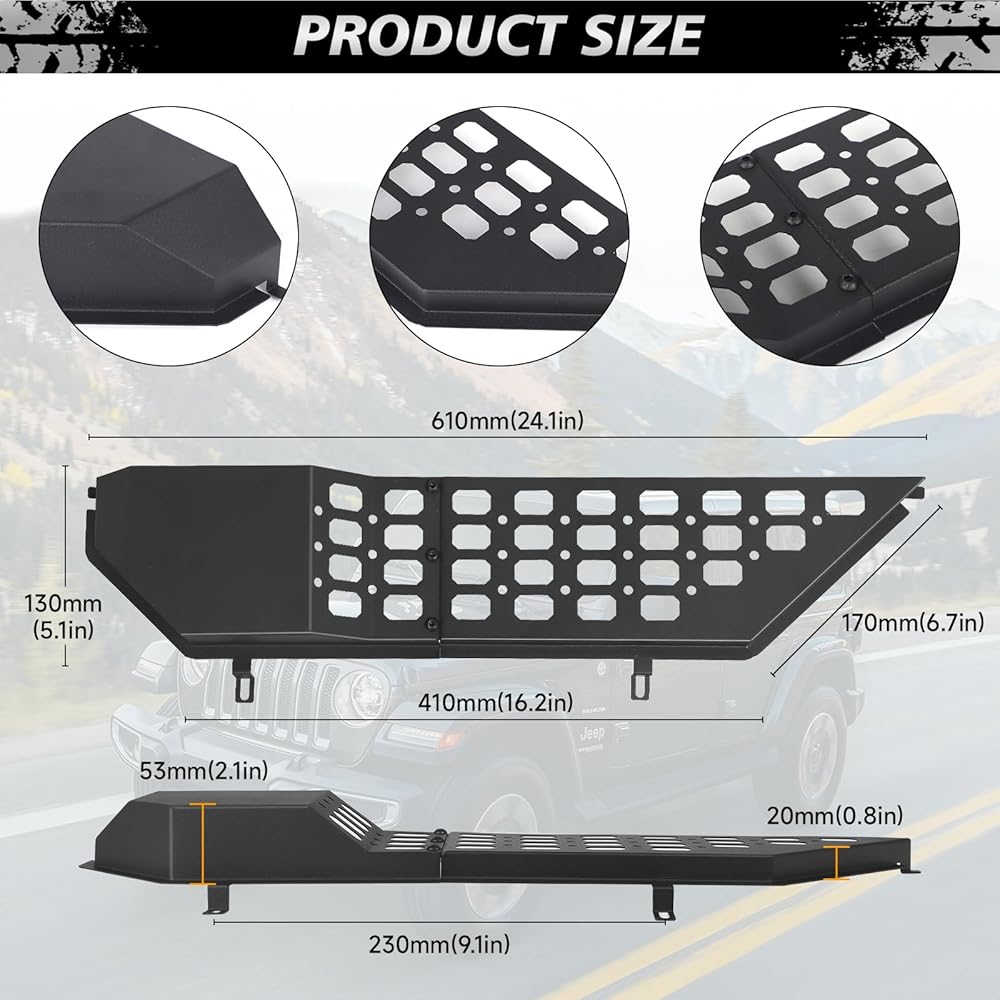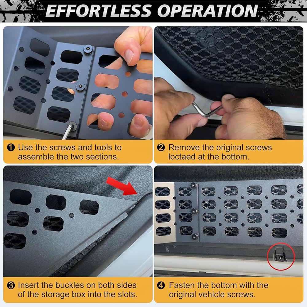 سهل التركيب: نحن نستخدم براغي آمنة للتركيب، بدلاً من طرق "الإطباق" غير المستقرة. لا يتطلب أي ثقب، يمكن إجراء التثبيت في غضون دقائق باستخدام براغي شبكية للباب الأصلية. حتى على الطرق الوعرة، يمكن تثبيته بإحكام