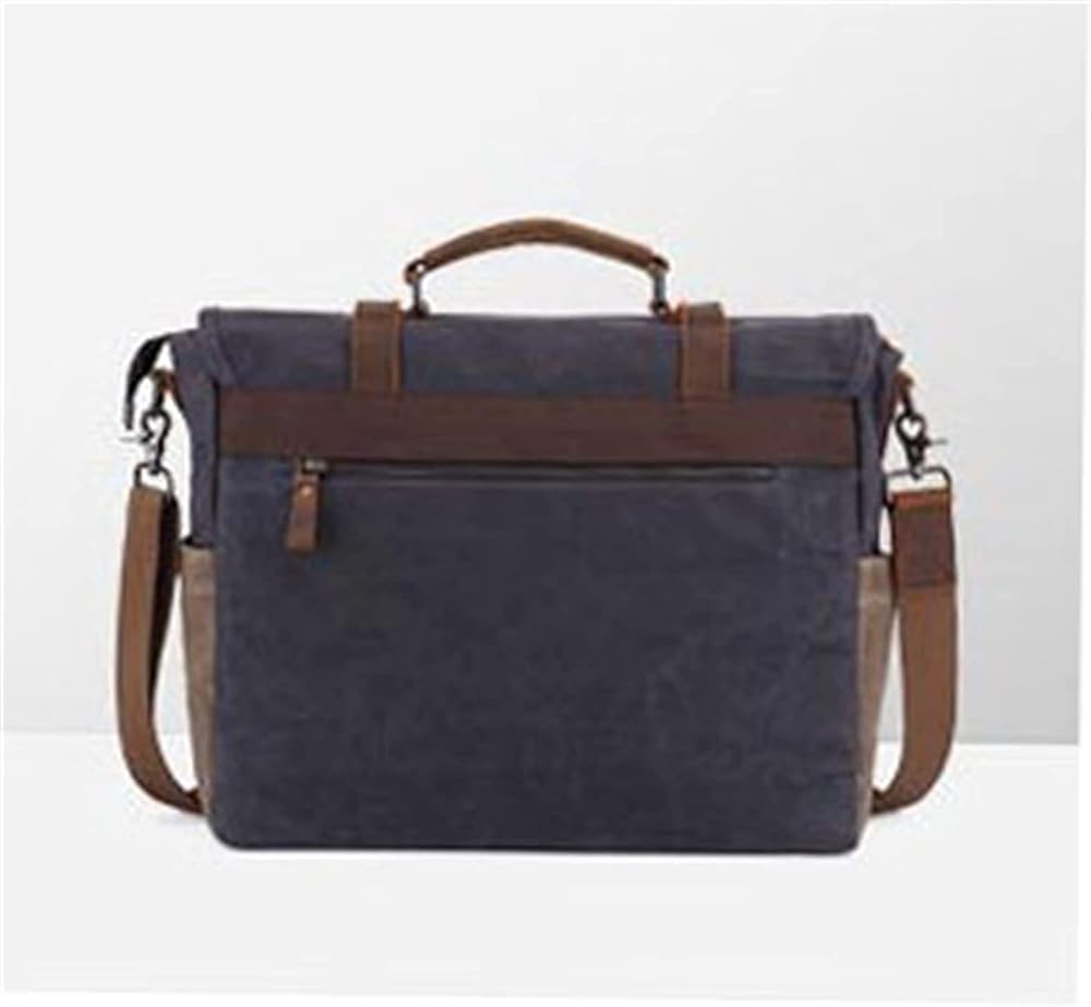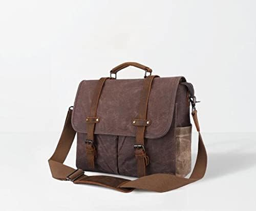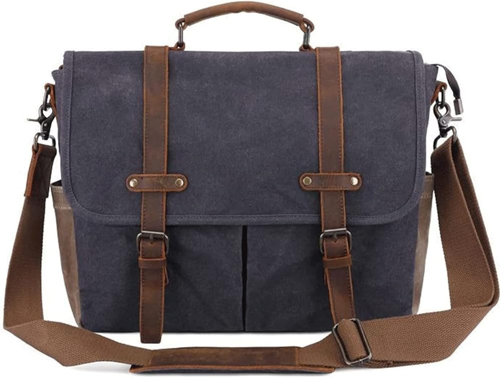 Mens Messenger Bag Waxed Canvas Briefcase Large Satchel Shoulder Rugged Leather Computer Laptop Bag(Size: 40x 31x10cm)(Gray)