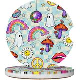 Retro Mushroom Ghost Rainbow 2 Pack Car Cup Holder Coasters Absorbent Ceramic Drink Coasters 2.56" Anti Slip Cup Mat with Cork Base and Finger Notch Auto Accessories Interior for Women Men in Kuwait