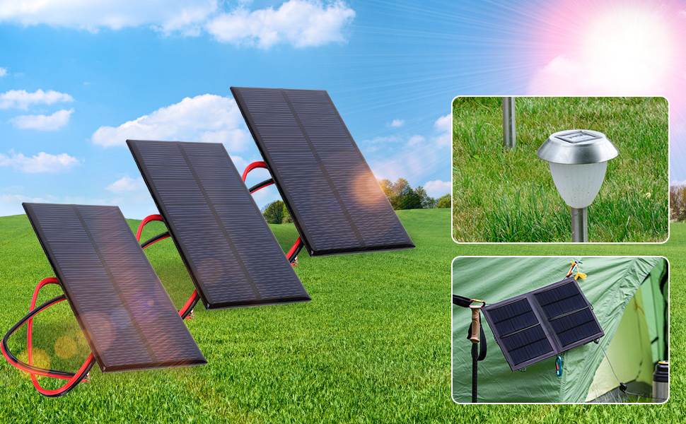 تطبيق واسع: يمكن استخدام وحدة طاقة الخلايا الشمسية لصنع مصابيح الحديقة الشمسية، وأضواء المناظر الطبيعية الشمسية، وشاحن الهاتف الخلوي الشمسي، ومصباح يدوي شمسي، ومجموعة متنوعة من الألعاب الشمسية الصغيرة.
