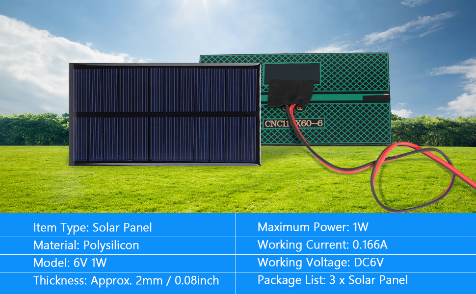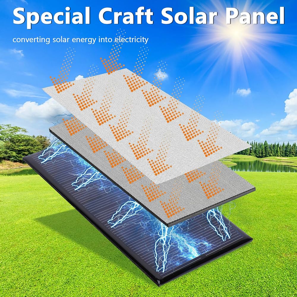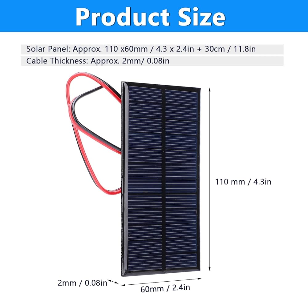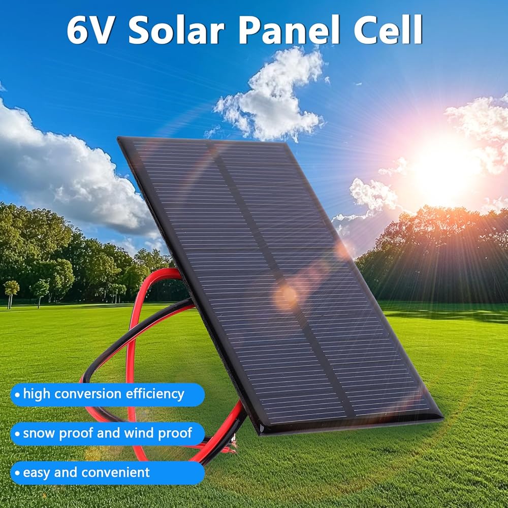 مع كابل 30 سم: لوحة شمسية 6 فولت 1 وات مع تأثير جيد للضوء الضعيف وكفاءة تحويل عالية وطاقة مخرج، مع كابل أحمر أسود 30 سم لسهولة التركيب.