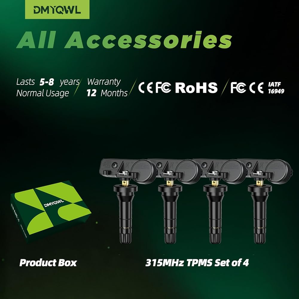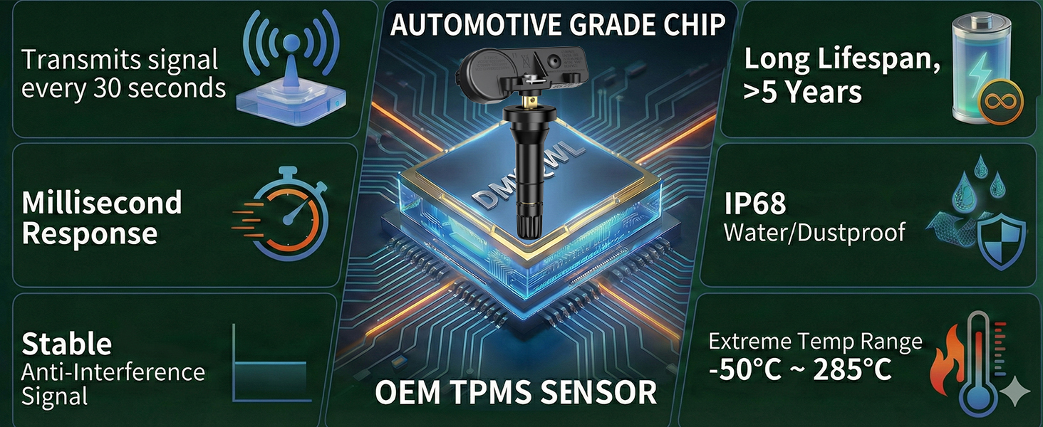 🔧[مبرمج مسبقًا]: مبرمج مسبقًا في المصنع - بدون تشفير أو رسوم إضافية؛ | تثبيت لمدة 30 دقيقة باستخدام أداة مسح TPMS؛ | يحافظ على ضغط الإطارات الأمثل لتقليل مقاومة التدحرج؛ | يساعد على تحسين كفاءة استهلاك الوقود وإطالة عمر الإطارات.