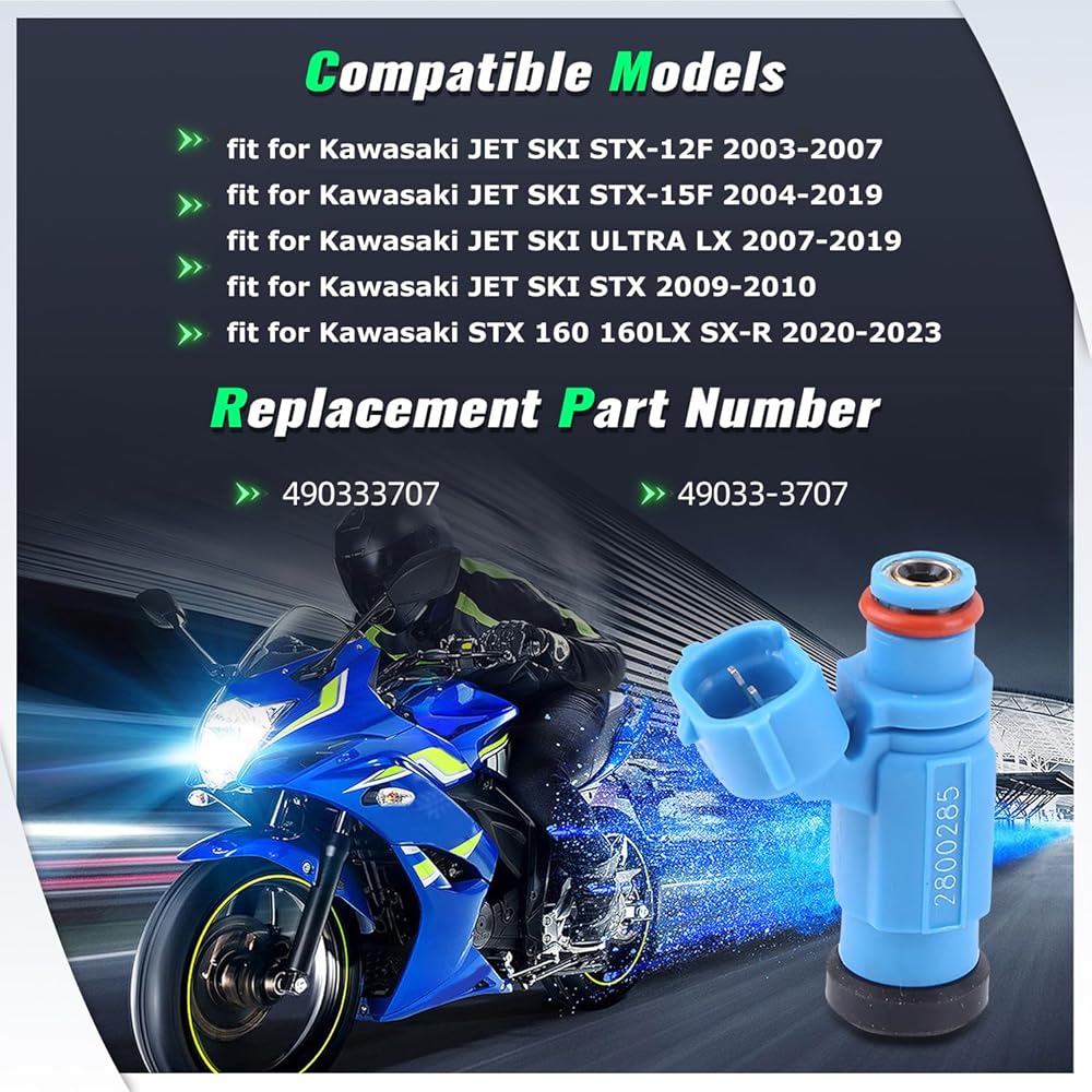 الإعداد: 49033-3707 حاقن الوقود لـ Kawasaki JET SKI STX-12F 2003-2007؛ لـ Kawasaki JET SKI STX-15F 2004-2019؛ لـ Kawasaki JET SKI ULTRA LX 2007-2019؛ لـ Kawasaki JET SKI STX 2009-2010؛ لـ كاواساكي STX 160 160LX SX-R 2020-2023 فوهات الوقود