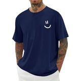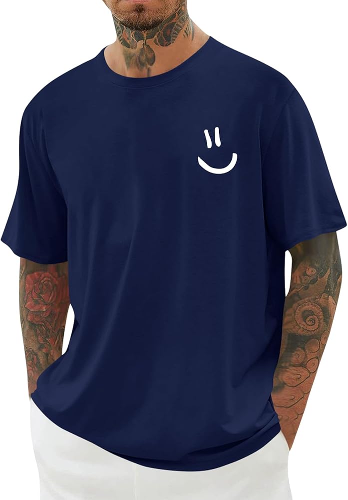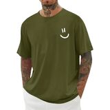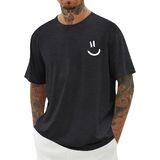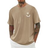 • تي شيرتات مبتكرة: تي شيرت كاجوال صيفي للرجال بطباعة وجه، مقاس فضفاض ونمط وجه مبتسم بسيط يضفي لمسة من المرح.
