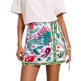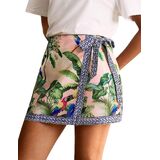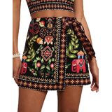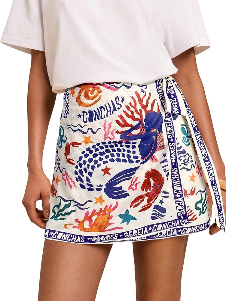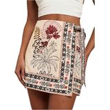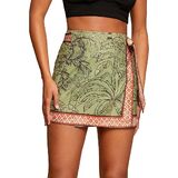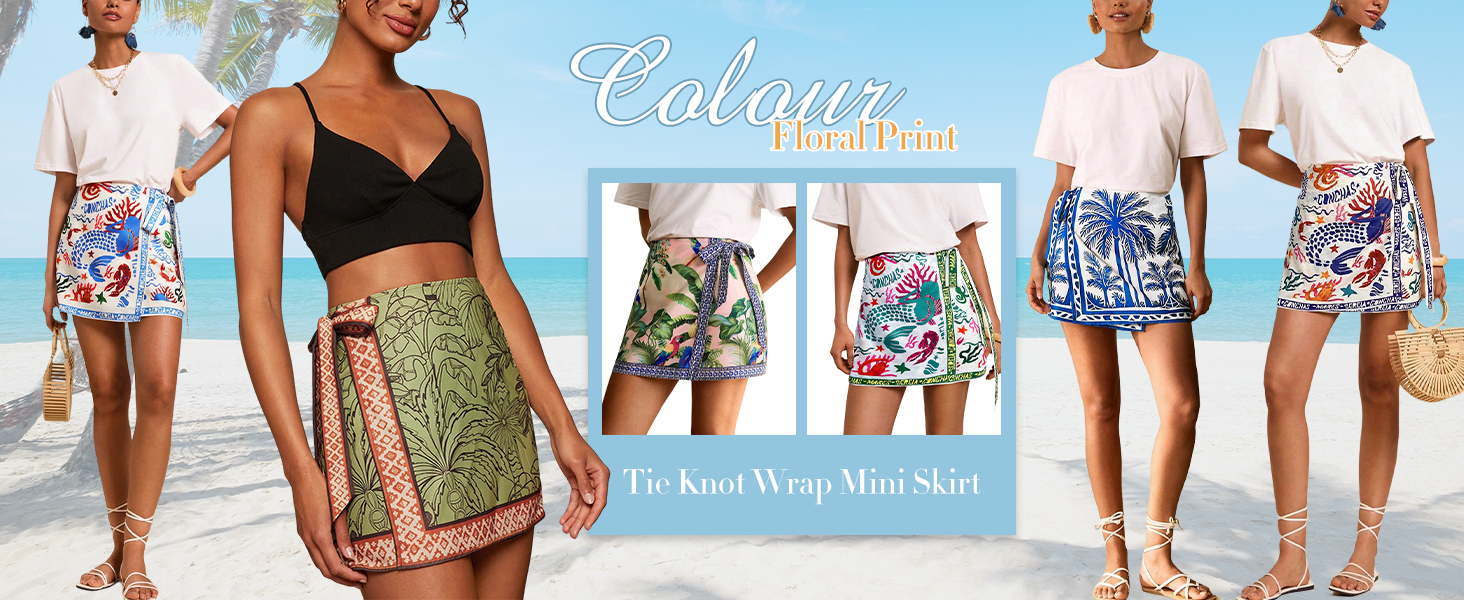 Design: Boho floral short skirt for women featured side tie knot, wrap high waist, mini short length, cute tropical ocean graphic Print, Bohemia floral design, slim fit. Customize the fit with flattering side ties for a chic, figure-flattering silhouette