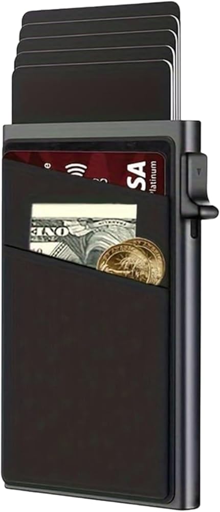 Innovative Pop-Up Mechanism: This mens wallet holds up to 8 cards and features a remarkable mechanical trigger. Simply pull the trigger, and watch as your cards slide out in a convenient ascending order.