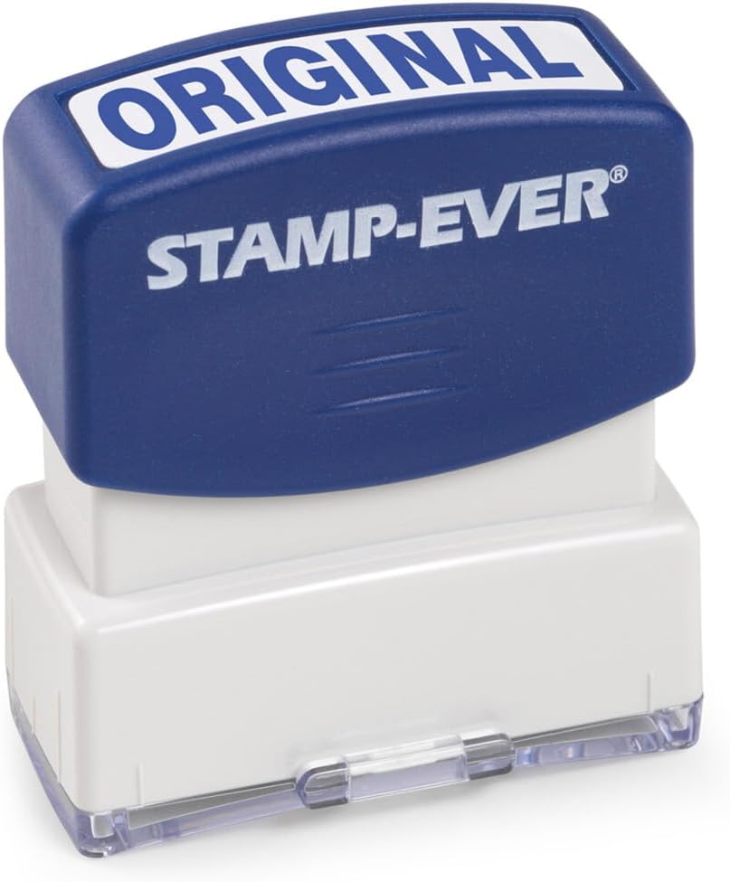 Pre-inked, one-color stamp imprints the word ORIGINAL in blue uppercase letters. Microporous ink surface produces a clean, crisp impression every time. Design features a soft-touch grip and flip-open lid. Message stamp offers an impression size of 1-11/16" x 9/16". TAA-compliant stamp lasts for 50,000 impressions before re-inking.