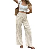 MakeMeChic Women's Striped Linen Pants High Waist Tie Front Drawstring Palazzo Pant Trousers in Kuwait