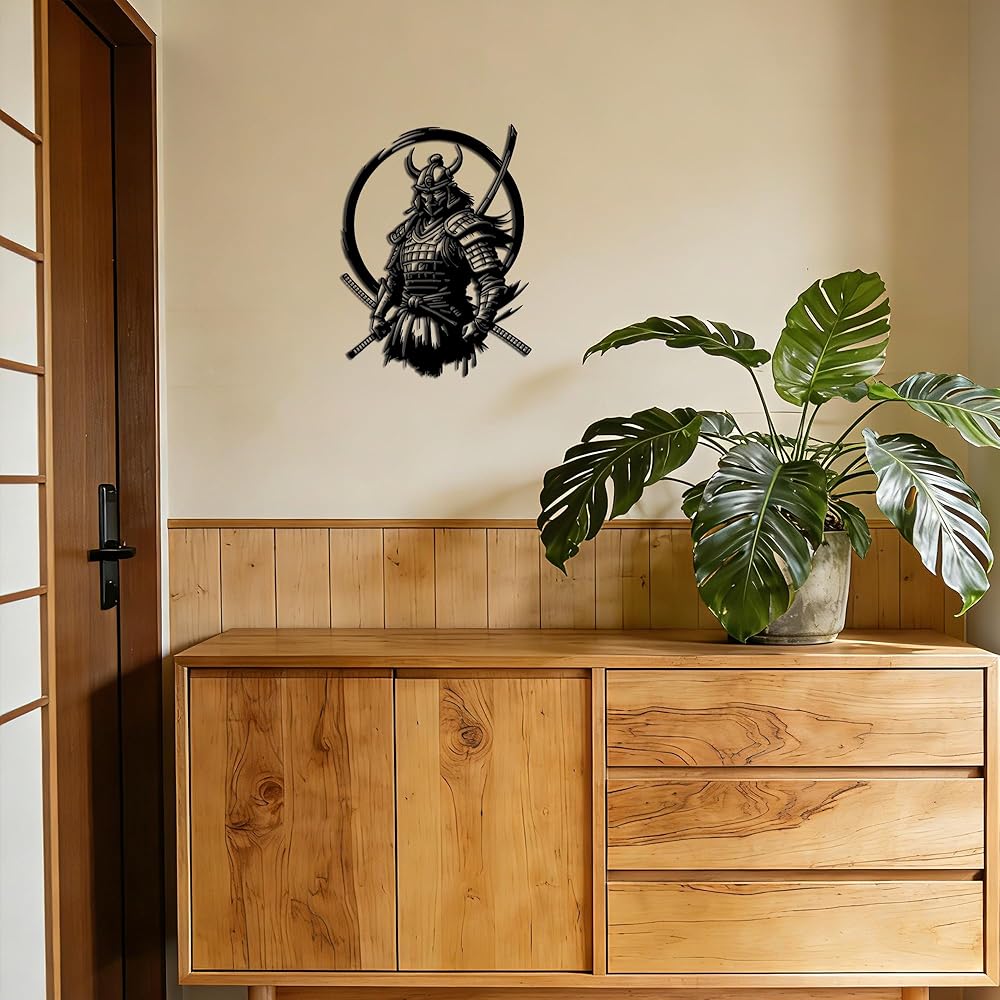 Elevate your space with this Samurai Warrior Armor Metal Wall Decor — a dignified tribute to traditional Japanese bushido culture. Measuring 13.78×10.31 inches, it balances prominent presence and subtlety: striking enough to stand out, yet not overwhelming for your walls. The armored samurai, paired with a samurai sword and a circular backdrop, creates a distinctive focal point that fits seamlessly into Japanese-themed decor areas, man caves, living rooms or shaded outdoor nooks.