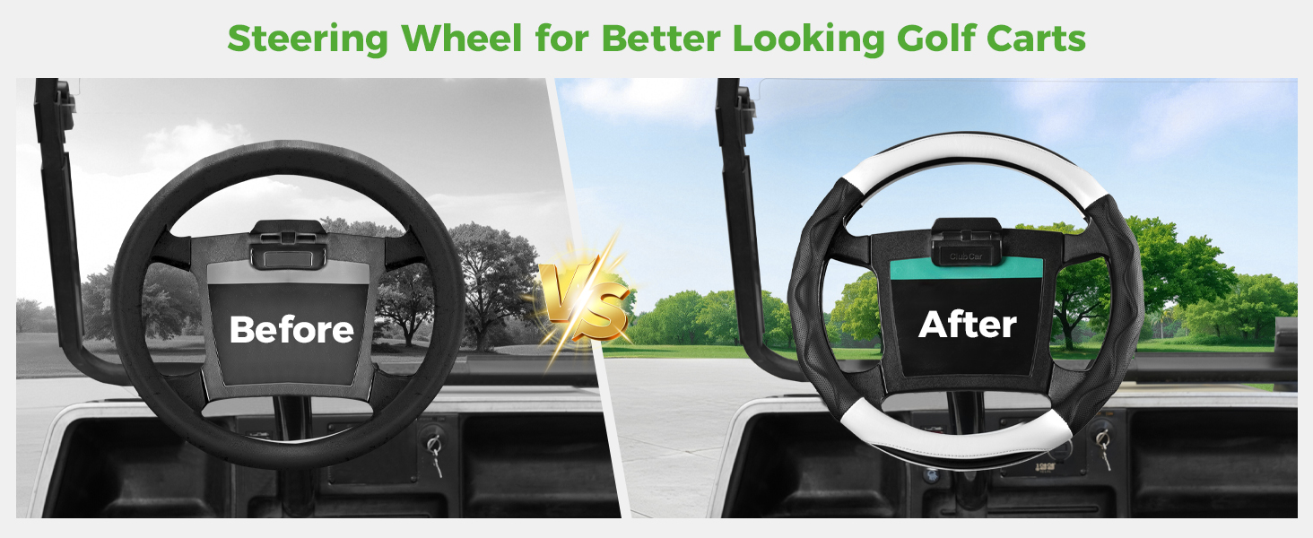 Made of durable PU leather with sports detailing carbon fiber pattern, perfect decor for your golf cart, also protect your steering wheel