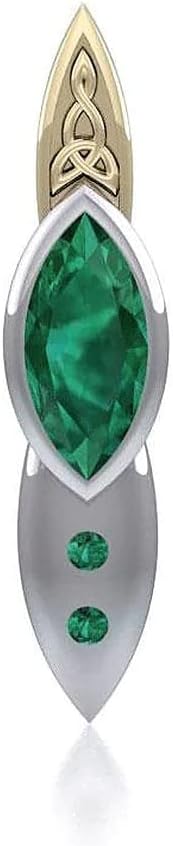 This delicate Celtic Knotwork Pendant is made of durable, lightweight, rust-resistant, and shiny sterling silver that makes it complete your jewelry collection for years to come. The necklace has a 14k Gold accent and features a beautiful Emerald Glass Gemstone in the center. The design of this gorgeous silver-golden green pendant features a unique Trinity Knotwork pattern that symbolizes the interconnectedness of all things and the eternity of life. The silver-golden green pendant has a vertically extended teardrop shape and measures 1.42 inches in height, being the perfect accessory that will surely make you stand out from the crowd. Additionally, it comes with a chain that measures 18” and is carefully packed in a box.