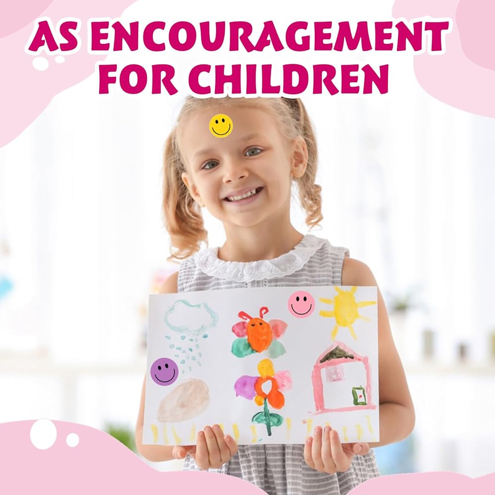 Each smiley sticker is made of safe, non-toxic paper—perfect for kids to stick on hands, notebooks, or chore charts—with a 1-inch size that's easy to handle and see. The self-adhesive backing peels off in a snap and sticks firmly, yet removes cleanly without residue—no more ruined papers or sticky fingers.