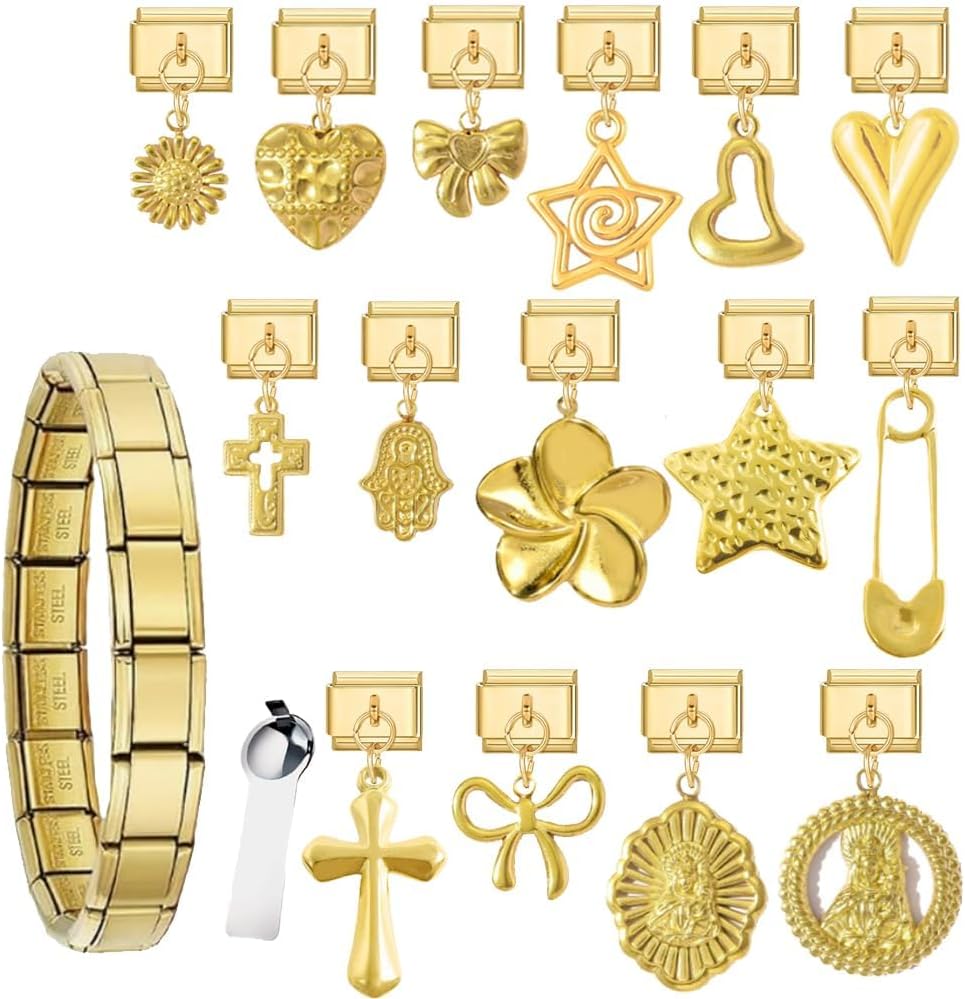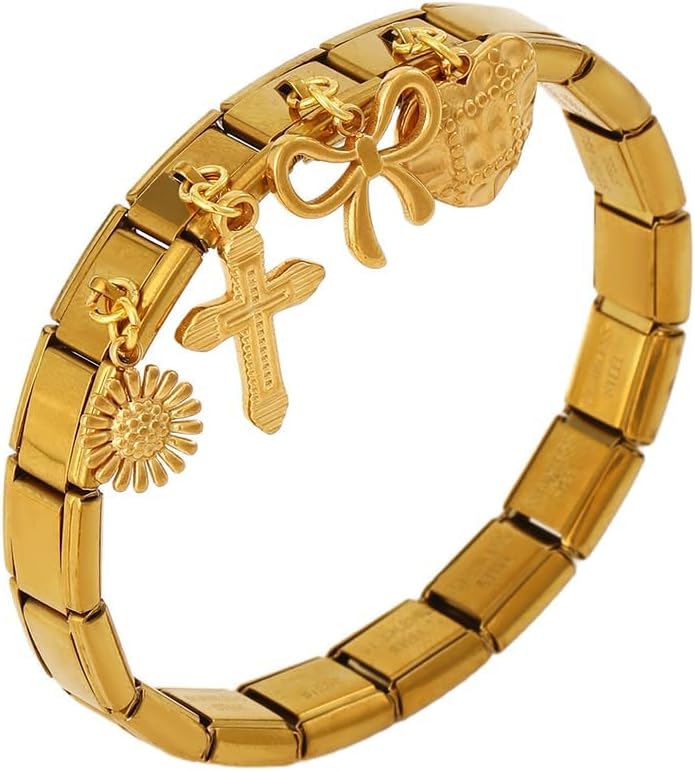 GOLD ITALIAN CHARM BRACELET: Unleash your creativity with assorted Italian bracelet charms and modular links, allowing you to personalize your bracelet for any occasion.
