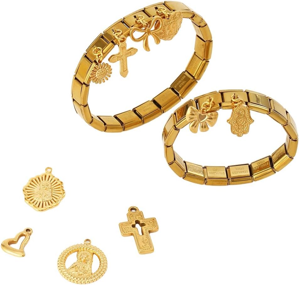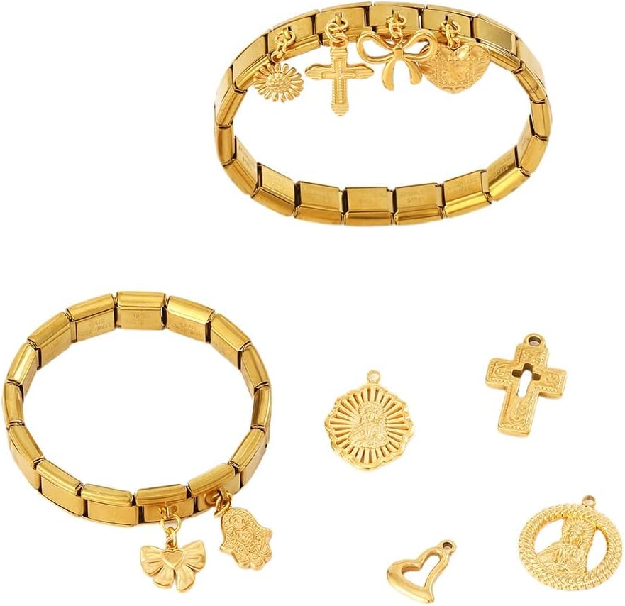 Gold Italian Cros Flower Charm Bracelet Women DIY Handmade Starter Bracelet Assorted Charms Opening Tools 9mm Modular Italian Bracelet Links Jewelry Stainless Steel Classic Italian Charm Bracelet Gold Italian Charms Italian Bracelet Gold Classic Charm Italian Charm Bracelets Italian Bracelet Italian Charms Gold