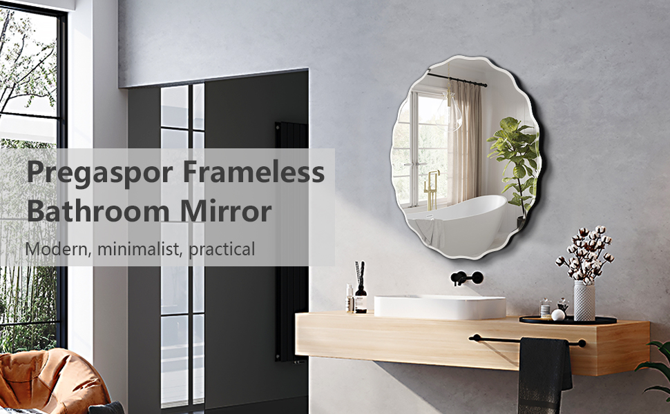 Pregaspor 20x28 Inch Frameless Oval Wall Mirror for Bathroom Sink, Minimalist Bathroom Vanity Mirror with Beveled Edge, Modern Mirrors for Wall Decor Living Room Entryway Bedroom