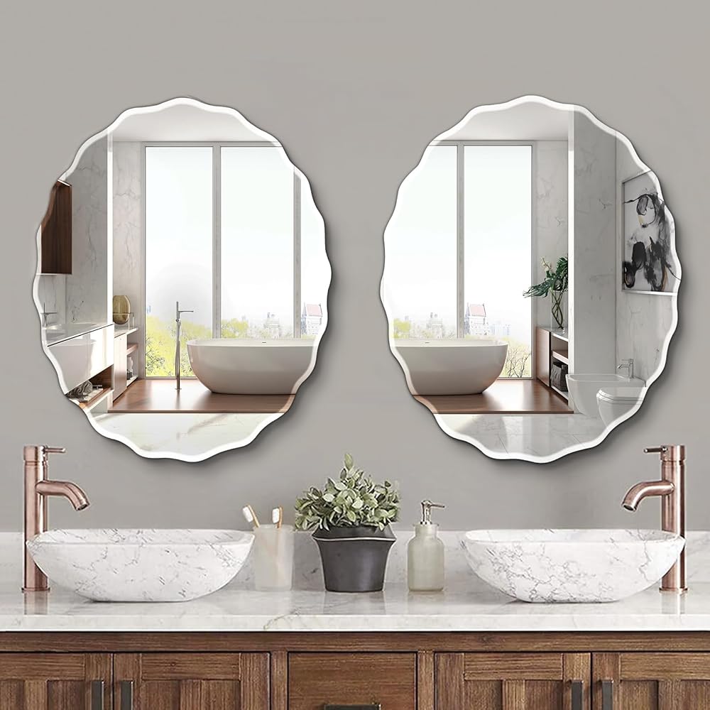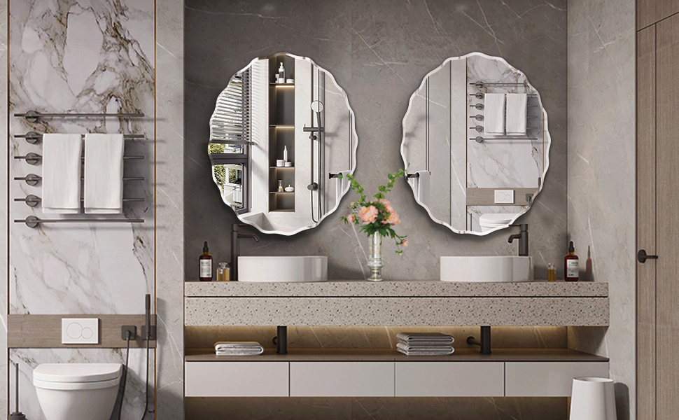 【Stylish Design】Frameless design combines with beveled edge gives the oval wall mirror a sleek and contemporary look. Polished edges ensure safety and a refined appearance. It's not only a practical reflection tool, but also an ideal wall decor mirror, adds a touch of sophistication to any room decor.