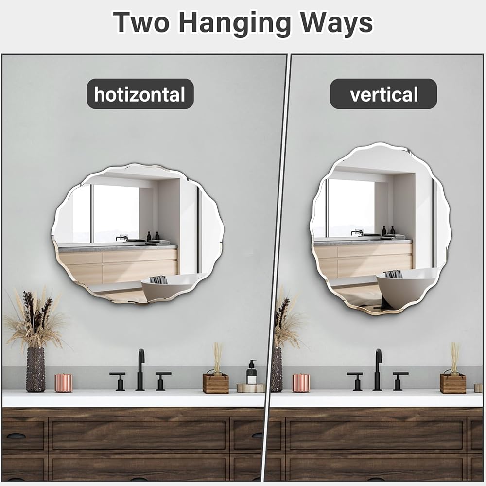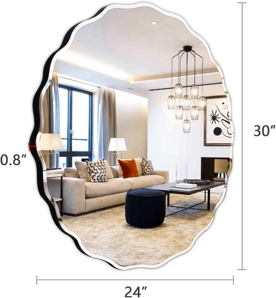 【Wide Application】This beveled mirror frameless has a 24x30 large reflective area, which can bounces light around and brighten up the room, it is an ideal decorative wall mirror for bathroom, dressing table, living room, bedroom, entrance,etc.