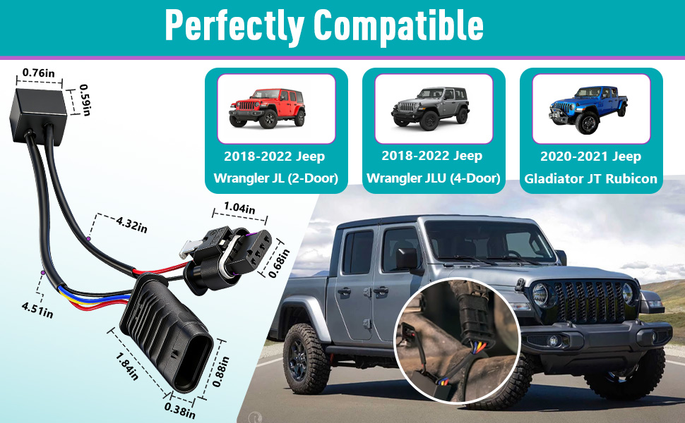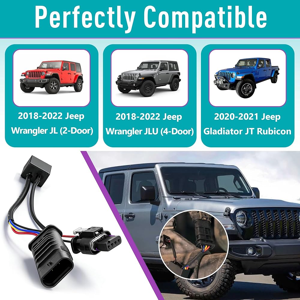 ملاءمة مثالية: تم تصميمه للتوافق المباشر مع التوصيل والتشغيل، تم تصميم سرج الأسلاك الالتفافية هذا خصيصًا لـ 2018-2024 Jeep Wrangler JL/JLU ولموديلات 2020-2023 Jeep Gladiator JT، مما يضمن المحاذاة المثالية والاتصال مع السروج الموجودة في السيارة