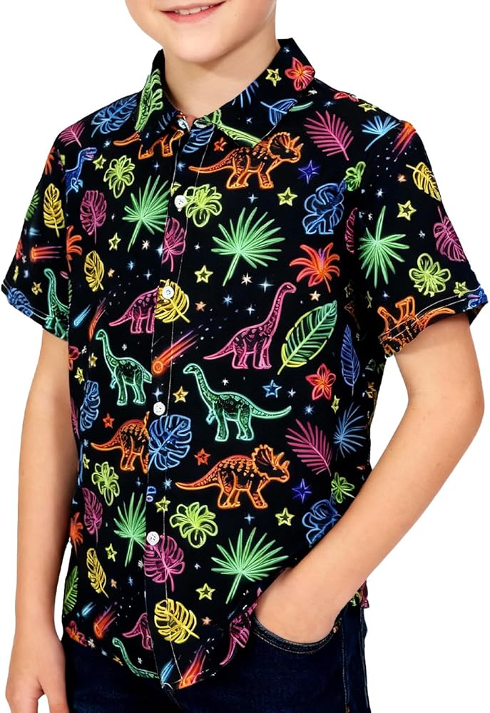 A Cool Gift for Dino Lovers: Searching for a unique birthday or holiday gift? This eye-catching dinosaur Hawaiian shirt delivers huge smiles. The button design is simple for kids to manage themselves.