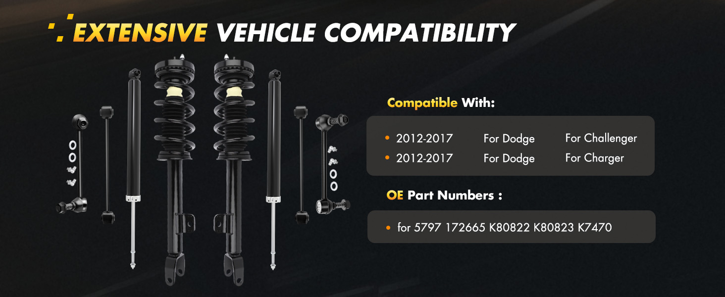 🍁نماذج متوافقة - استبدال الأرقام 5797، 349065، K80822، K80823 وK7470 - تم تصميم مجموعة الدعامات الكاملة هذه خصيصًا لـ 2012-2019 لدودج تشالنجر و2011-2019 لنماذج دودج تشارجر.