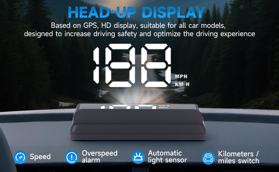 【عداد سرعة بخط كبير عالي الدقة】عداد سرعة السيارة مجهز بمظلة شمسية خاصة وشاشة عرض مقاومة للوهج، مما يتيح للبيانات أن تنعكس بدقة على الزجاج الأمامي ويقلل بشكل فعال من التداخل الناتج عن أشعة الشمس والوهج الليلي.
