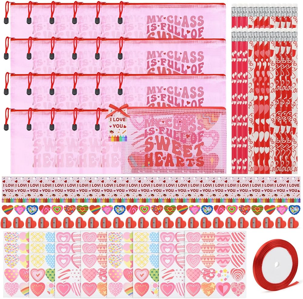 هدايا عيد الحب للأطفال في الفصل الدراسي، مجموعة من 24 قطعة من قرطاسية عيد الحب لهدايا تبادل المدارس للأطفال، هدايا لحفلات عيد الحب، حقائب هدايا رائعة، هدايا للفصل الدراسي للطلاب
