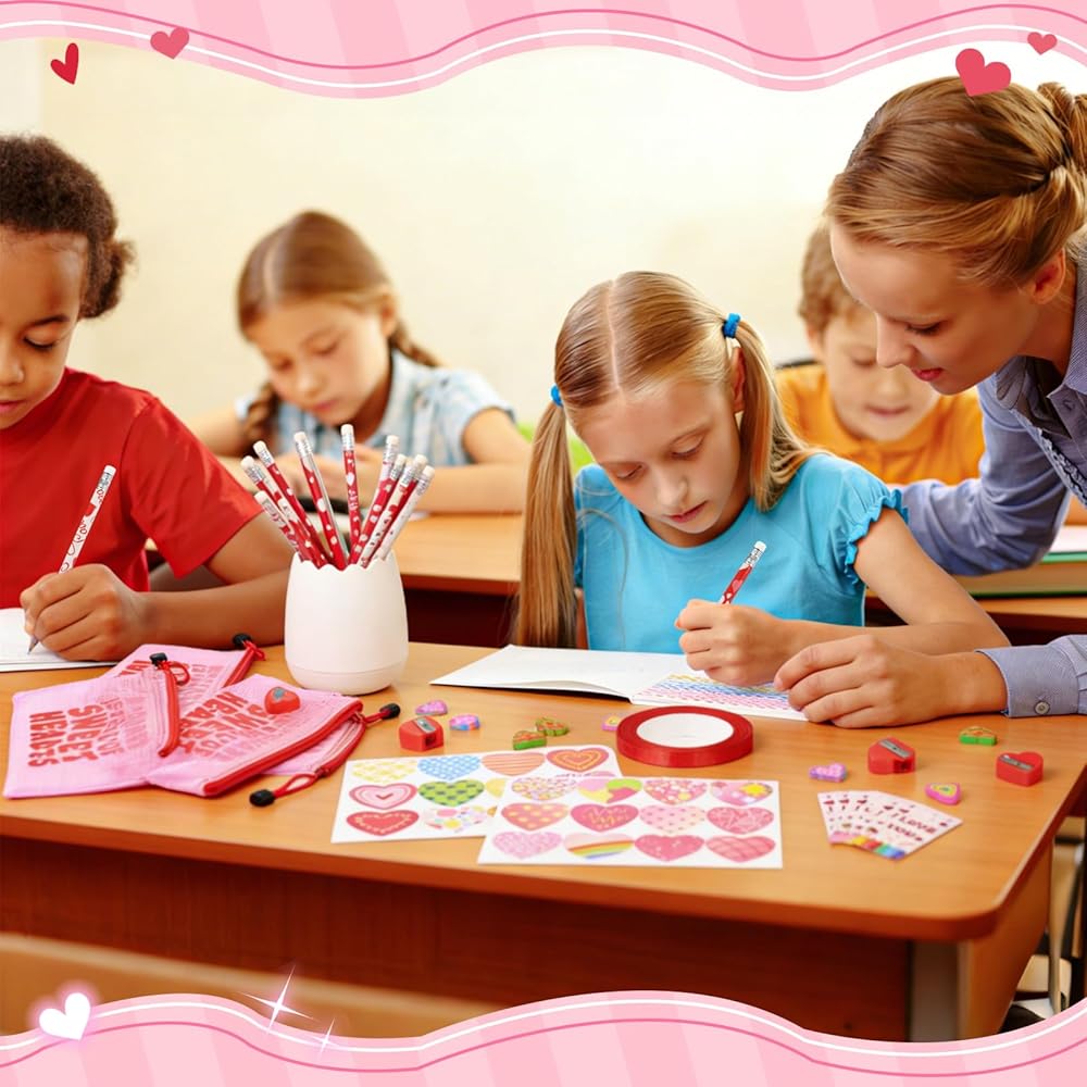 بديل غير كاندي لعيد الحب: على عكس الحلي المؤقتة، تتميز هدايا عيد الحب هذه لتبادل الفصول الدراسية للأطفال بقرطاسية مفيدة يمكن للطلاب استخدامها فعليًا في المدرسة. بالإضافة إلى ذلك، جميعها مصممة بألوان وأنماط عيد الحب، لطيفة وجميلة للاحتفال بعيد الحب!