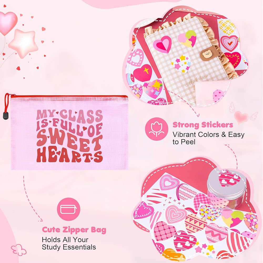 تشجيع الإبداع والمرح: مع ملصقات القلب الملونة والبطاقات ذات الطابع الخاص المتضمنة في كل مجموعة، يمكن للطلاب إضفاء طابع شخصي على مقتنياتهم أو مشاركة روحهم الإبداعية مع الأصدقاء. إنه الخيار المثالي لتبادل الفصول الدراسية في عيد الحب، أو صناديق الجوائز المدرسية، أو هدايا الحفلات التي تحمل طابع عيد الحب