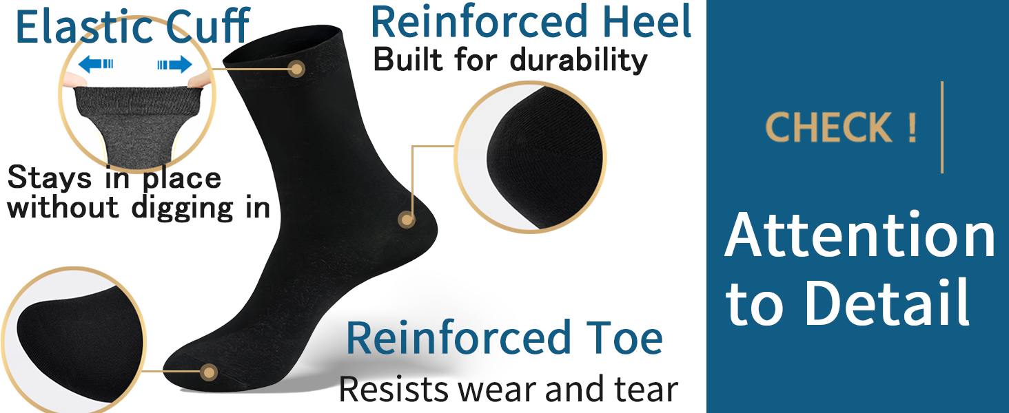 【Durable Reinforced Heel & Toe】 Reinforced at the heel and toe to resist wear and tear, significantly increasing the durability and lifespan of these everyday socks.