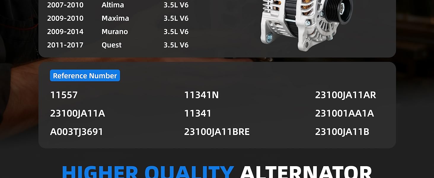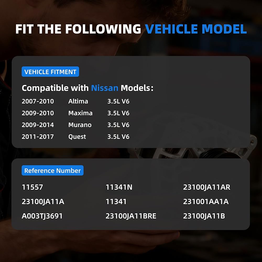 【ملاءمة تامة وتوافق واسع】: مولد كهربائي بديل مباشر مناسب لـ (11557,23100JA11A,A003TJ3691,11341N,11341,23100JA11BRE,23100JA11AR,231001AA1A,23100JA11B). تحقق من تفاصيل سيارتك ورقم الجزء للحصول على ملاءمة مثالية وخالية من المتاعب
