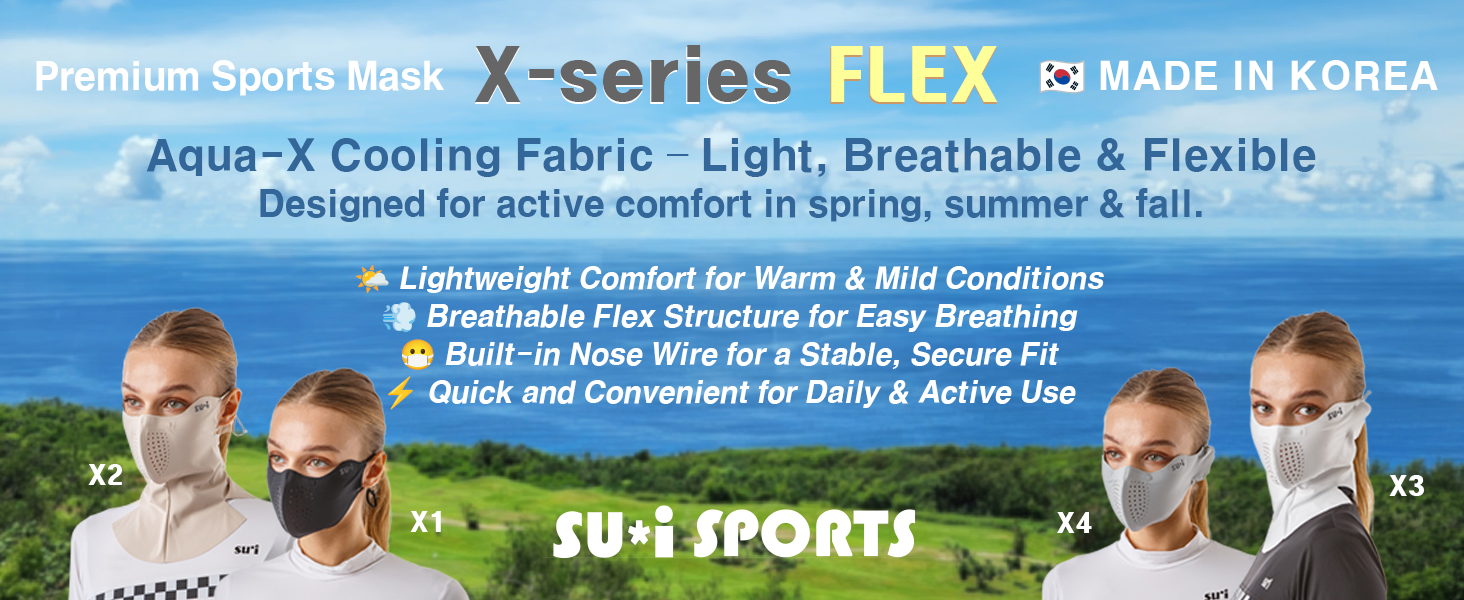 Lightweight and breathable X-Series FLEX mask made with Aqua-X cooling fabric for all-day comfort. Choose Basic for everyday wear or Power for enhanced airflow during high-intensity activity. Ideal for golf, running, and outdoor sports in warm weather.