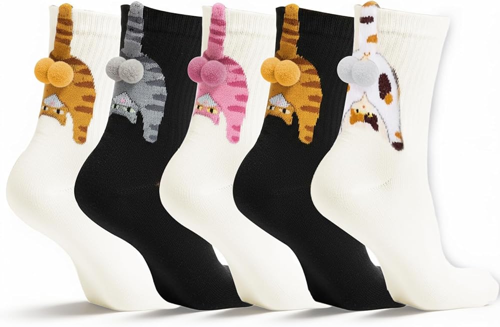 1.Funny cat socks with 3D pom poms show a playful and creative look that adds humor to your style