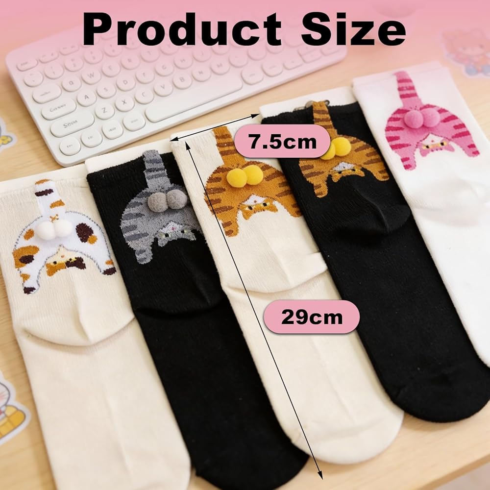 Super Value 5-Pack: Get 5 pairs of cat crew socks at once! Each pair features a unique color, easily matching your daily outfits to meet your color needs