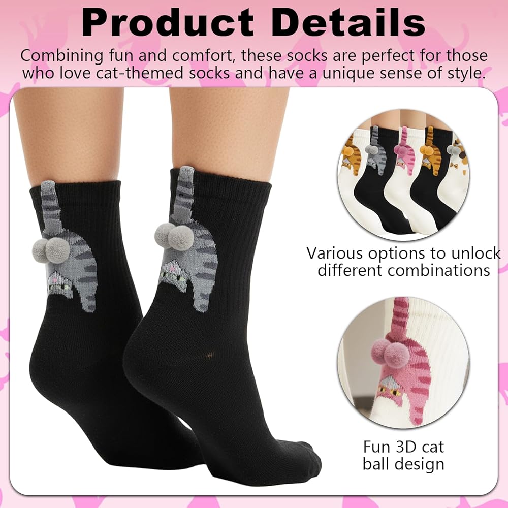 Funny 3D Cat Ball Design: These cute cat socks with balls feature a Impressive 3D cat ball design that is sure to turn heads and spark conversations wherever you go. With these eye-catching 3D balls for cat socks, you're guaranteed to stand out and bring laughter to others!