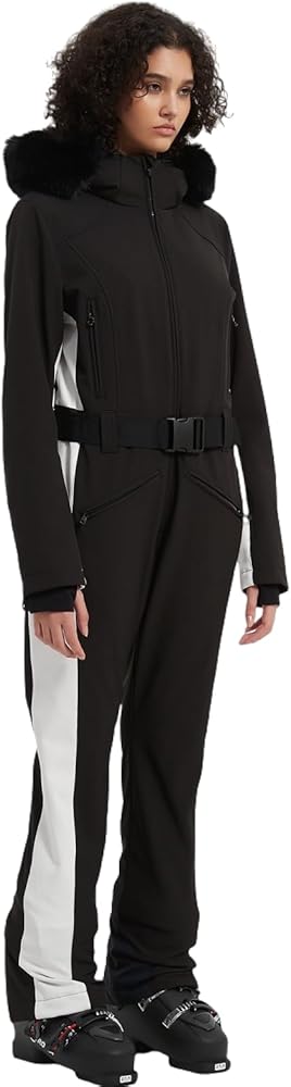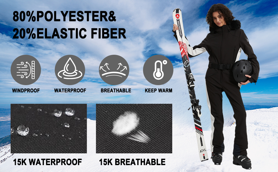مواد دافئة: بدلة التزلج النسائية هذه المكونة من قطعة واحدة مصنوعة من 80% بوليستر و20% ألياف لدنة، وتتميز بحشوة قطنية دافئة عند الياقة وزخرفة من الفرو الصناعي قابلة للفصل على غطاء الرأس. يوفر الدفء والراحة الاستثنائيين، ويمنع نزلات البرد بشكل فعال، مما يسمح لك بالاستمتاع الكامل بأنشطة التزلج في الهواء الطلق
