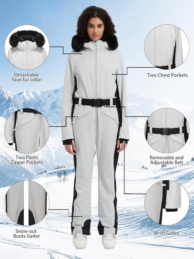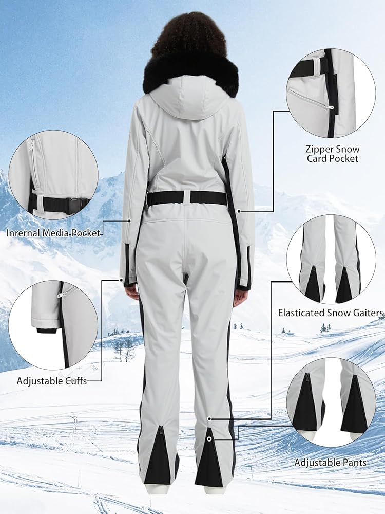 تصميم متكامل: السحاب الأمامي مصنوع من الراتنج لسهولة التشغيل وسهولة الارتداء. تشتمل البدلة على أربعة جيوب - جيبان داخليان وجيب واحد كم لتمريرات التزلج. يتميز بحزام خصر قابل للفصل والتعديل لملاءمة قابلة للتخصيص، بالإضافة إلى أساور أكمام مقاومة للرياح قابلة للتعديل وسحاب مقاوم للماء قابل للتعديل مع تنورة رياح عند الحاشية.