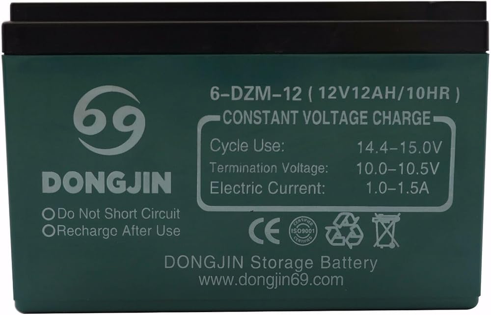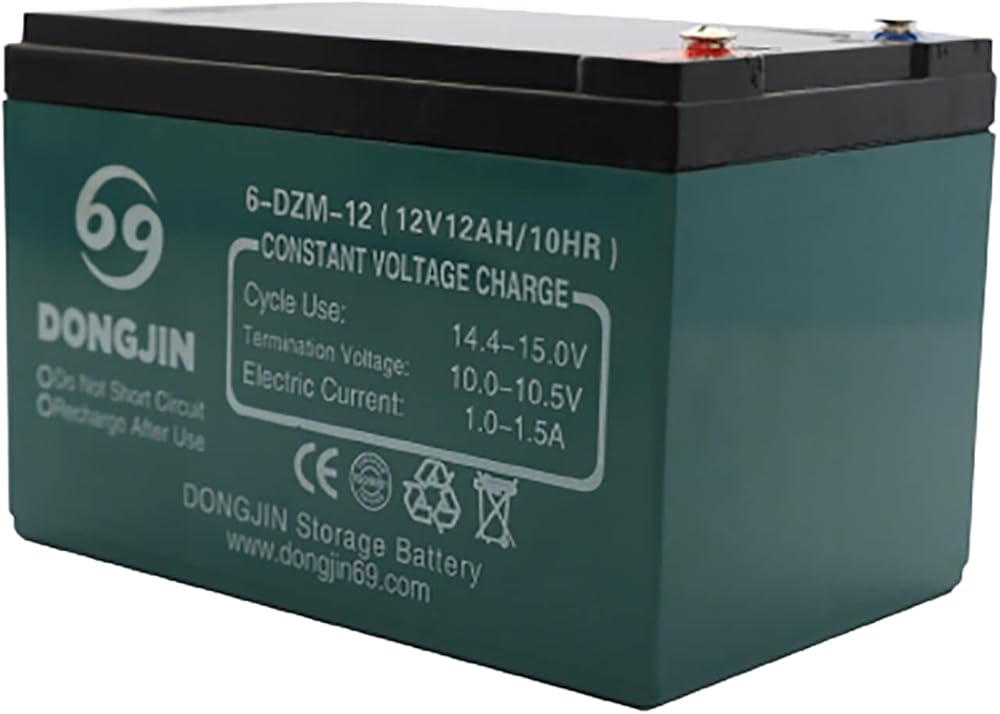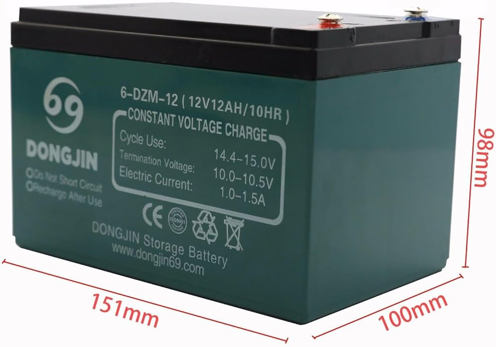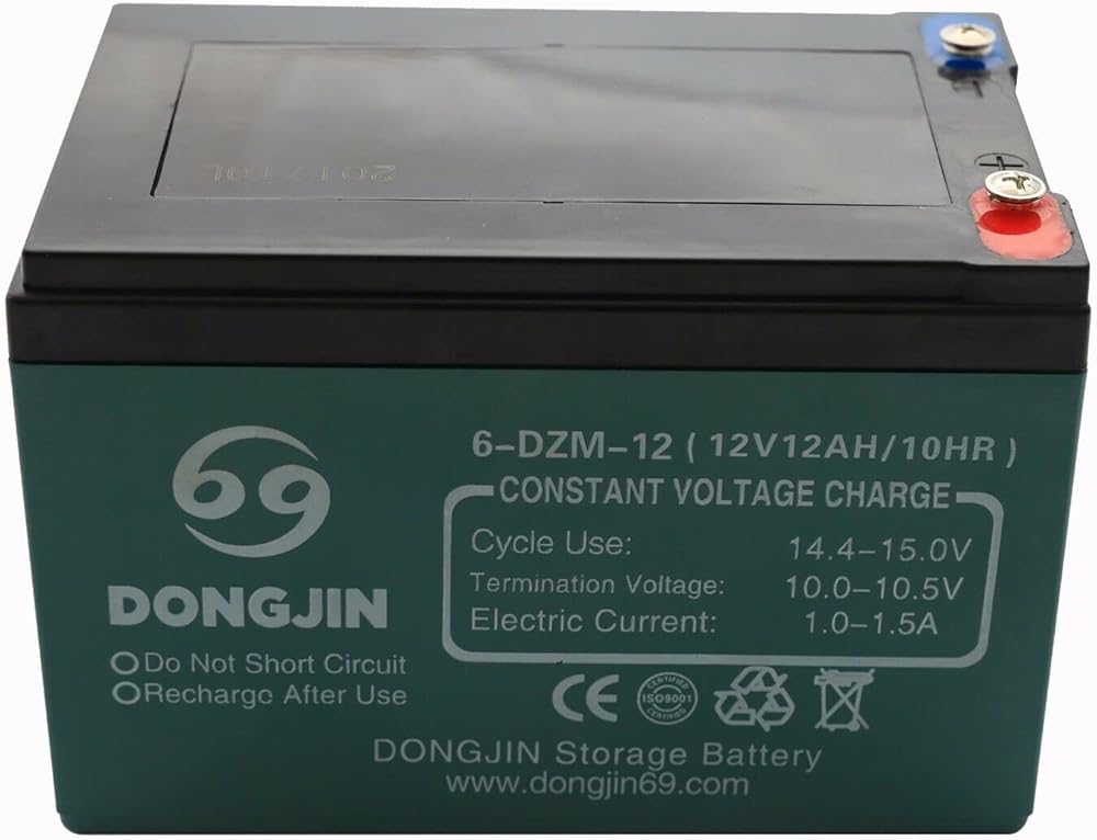 - 12V 12AH Sealed Lead Acid (SLA) rechargeable maintenance free battery